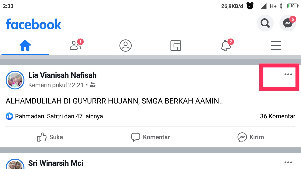 - Klik titik tiga di kanan postingan.