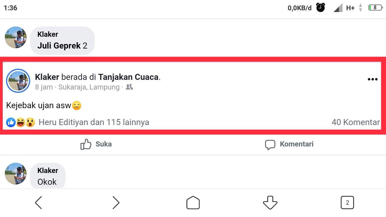 Ketika sudah di klik postinganya, maka kalian hanya berada di postingan tersebut. Untuk memastikanya, silahkan scroll sampai bagian paling bawah halaman tersebut, jika hanya ada komentar berarti benar dan silahkan klik kolom link di bagian atas hp anda dan copy link tersebut.