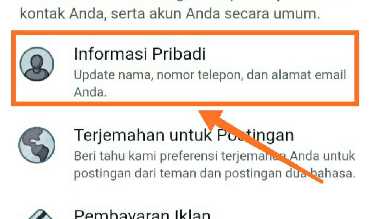 • Klik informasi pribadi supaya bisa melanjutkan mengganti email Fb.Bagaimana cara mengubah akun di Facebook? Tahap berikutnya ini kalian pilih saja yang paling atas ataupun informasi pribadi (Update nama, nomor telepon, dan alamat email Anda).