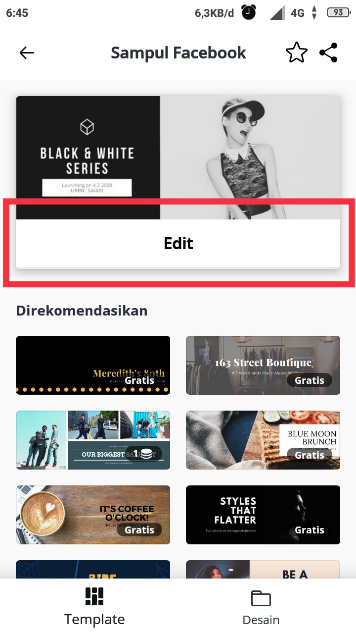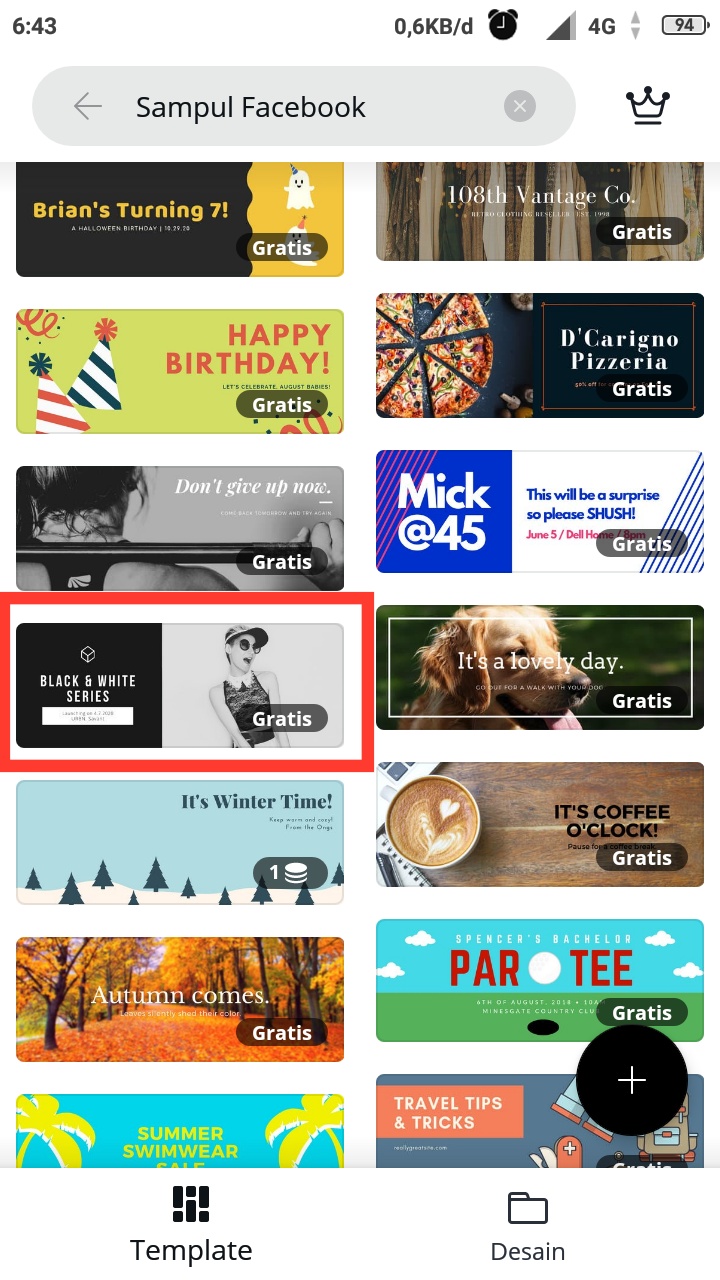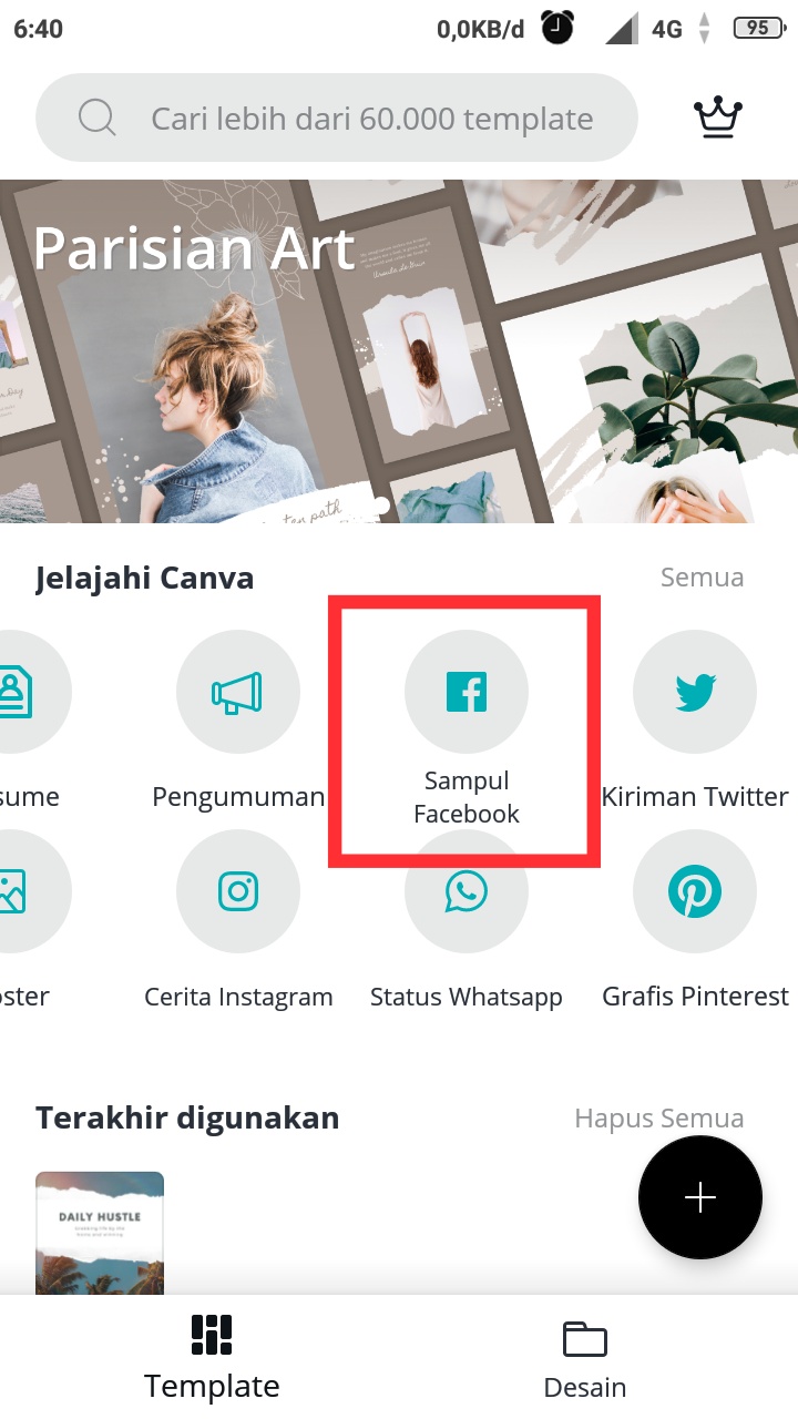 Di dalam aplikasi canva telah di sediakan template khusus untuk sampul Facebook, baik yang gratis maupun berbayar.