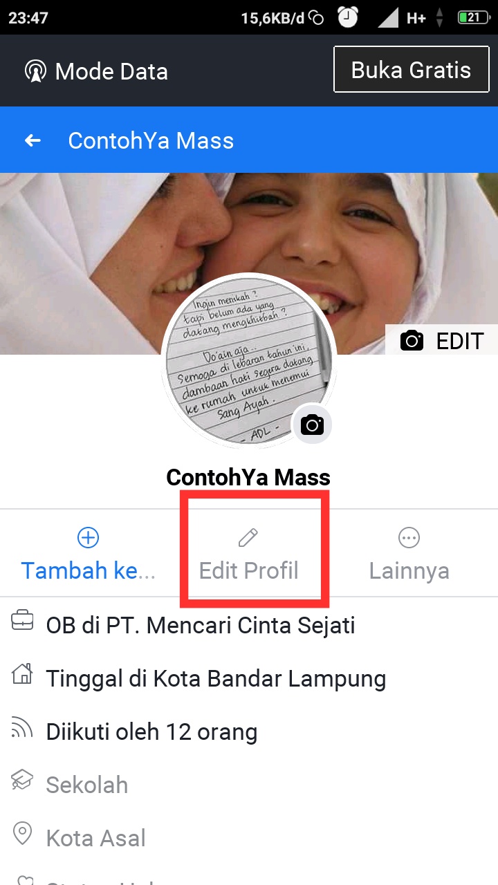 Silahkan klik edit profile yang berada di bagian bawah foto profil.