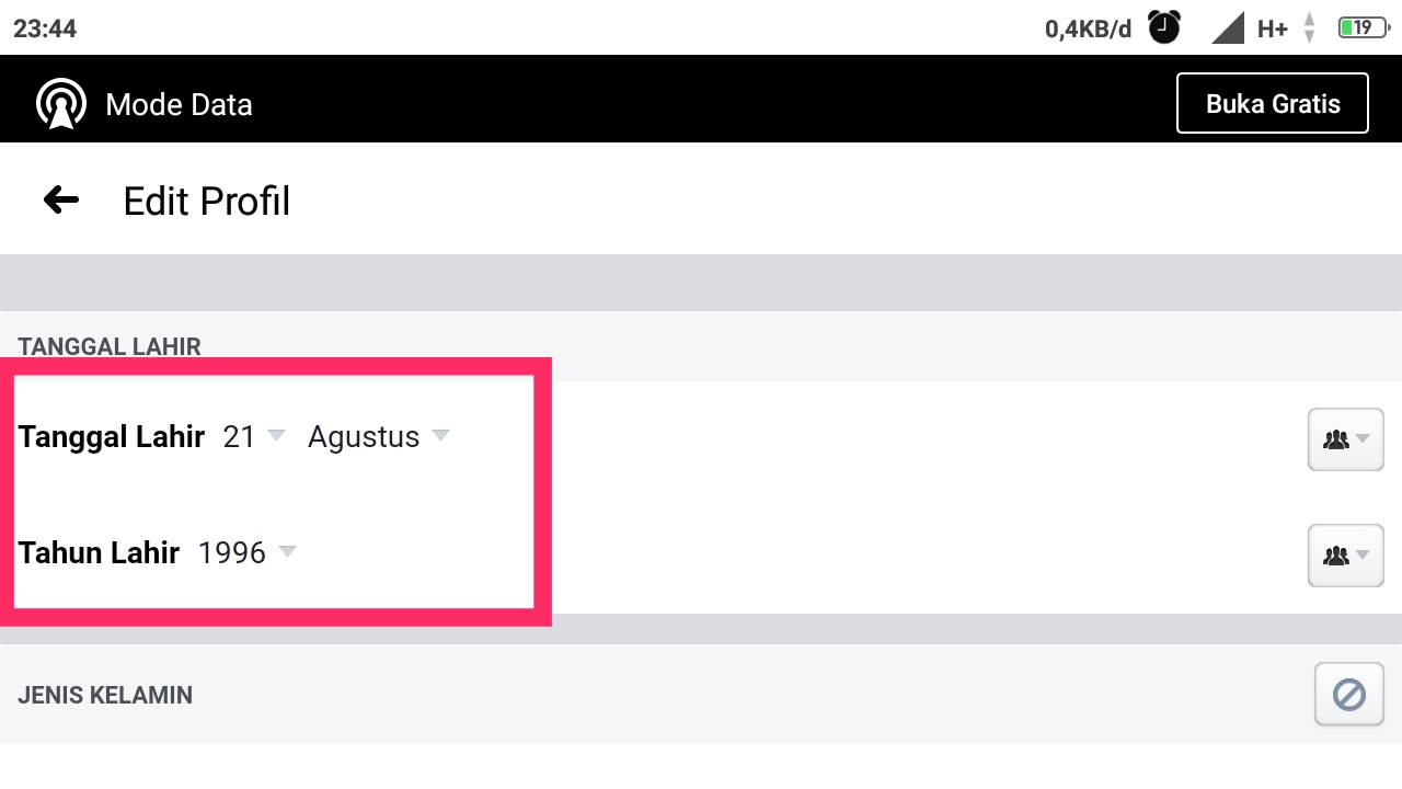 Mengganti tanggal lahir di fb