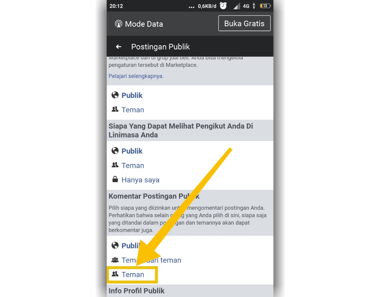 Pada bagian Komentar postingan publik klik Teman
