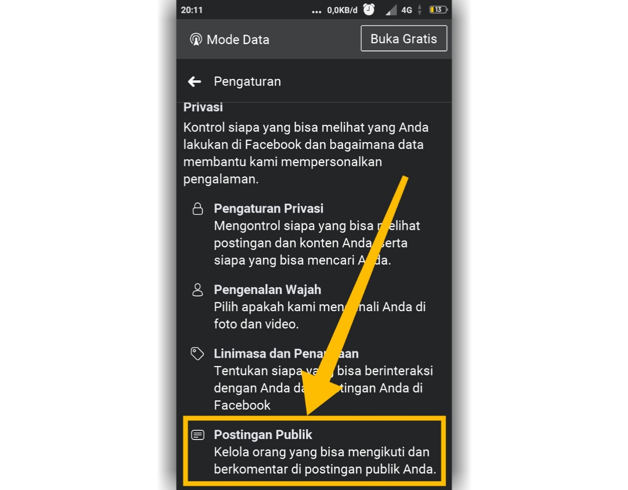Gulir kebawah lagi pada bagian privasi pilih yang Postingan publik